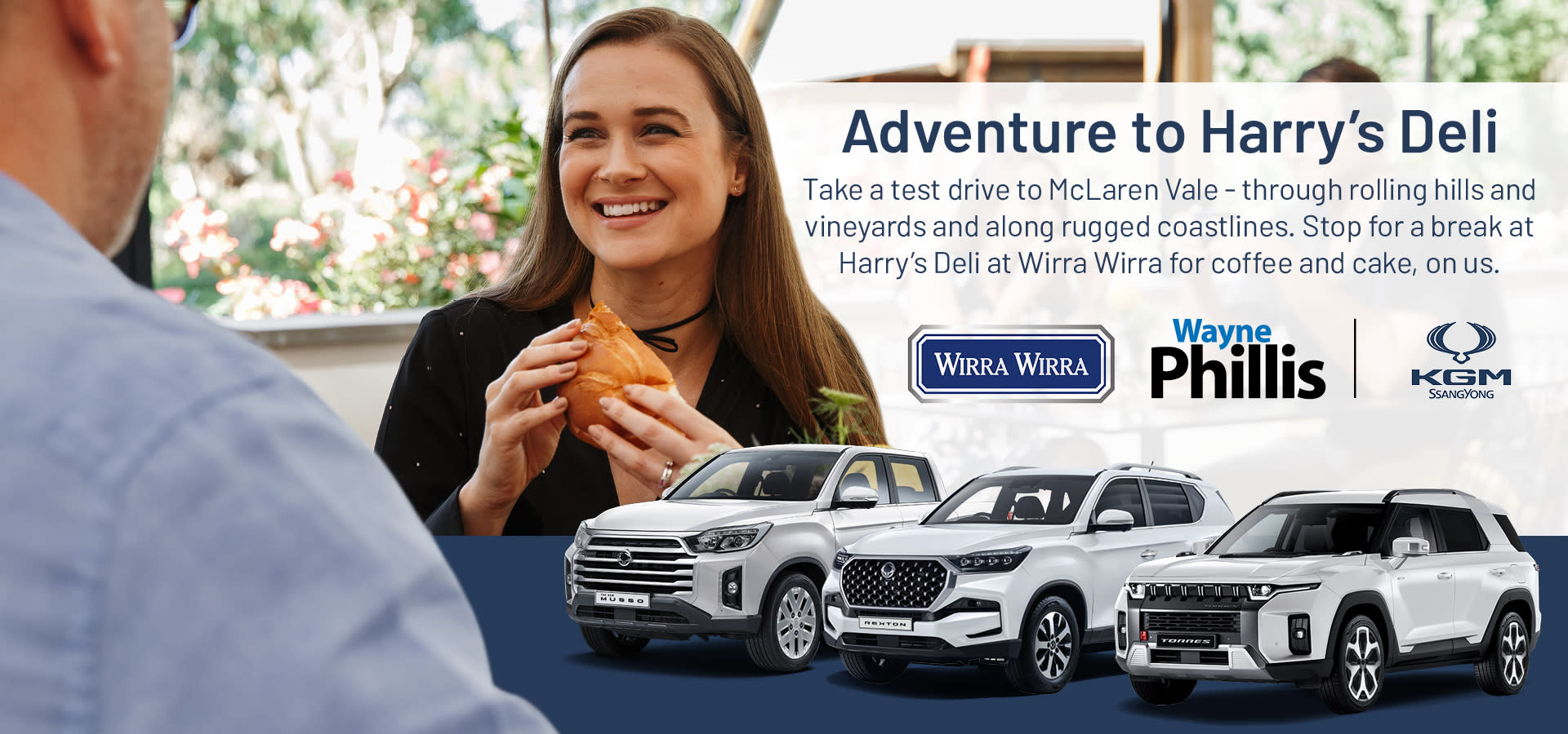 Pull into Harry’s Deli at Wirra Wirra for a FREE Hot Tea/ Coffee and Cake on us to discuss your experience of the vehicle so far.